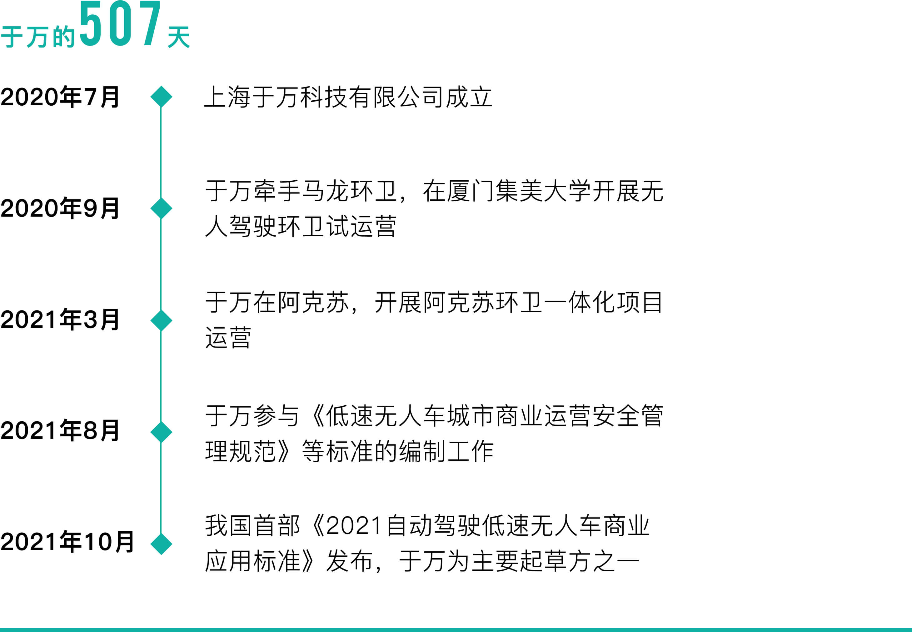 在不到两年的时间里,于万已经拿下了多个智能环卫项目,并且有了三款主打环卫产品。截止到今天,于万的智能驾驶环卫车,已经服务了1584万平方米的城市道路,合同金额达到6亿。